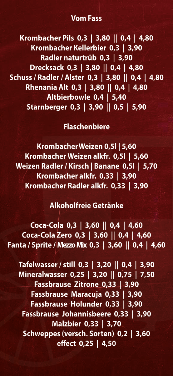 Um unsere komplette Getränkekarte zu sehen, einfach auf das Bild klicken.